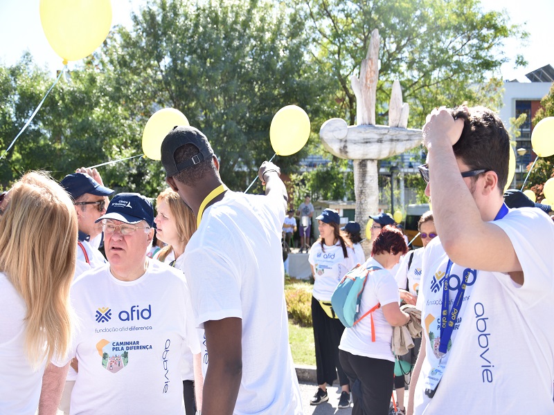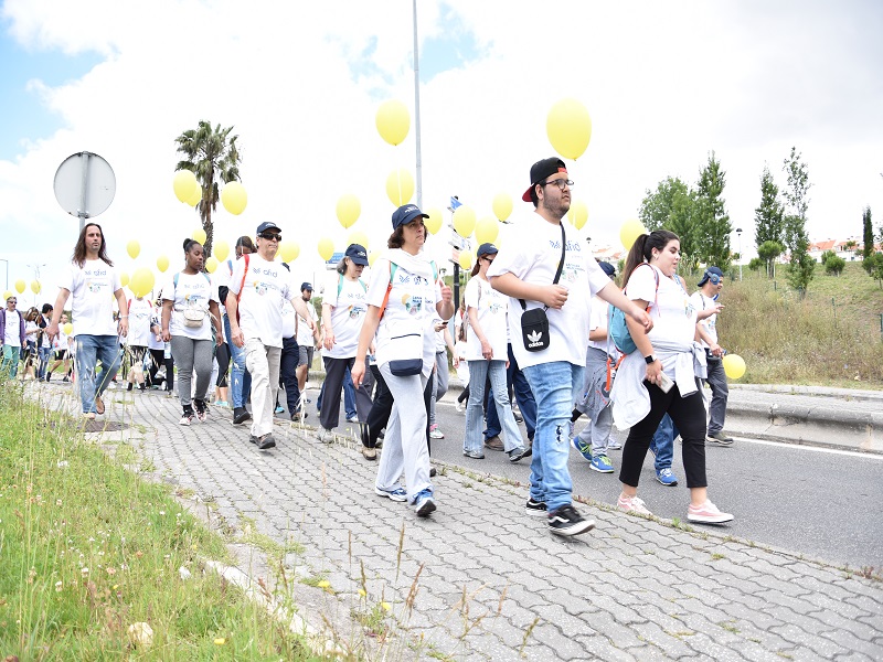 Num dia de festa e bastante colorido, cerca de 450 pessoas deram as mãos e sensibilizaram a comunidade para a problemática da deficiência.